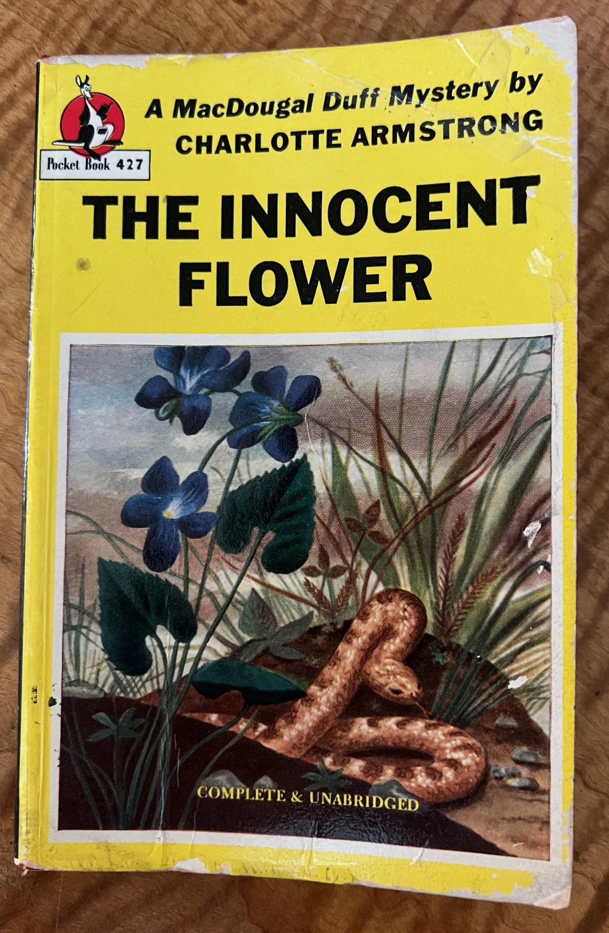 The Innocent Flower was Armstrong’s third novel and the last in her mystery trilogy starring retired history professor and renowned amateur detective MacDougal, “Mac”, Duff. It’s the kind of mystery I love: smart, literary, Golden-Age (or Golden-Age-flavored) whodunits featuring cerebral, bachelor detectives who find themselves perturbed, unexpectedly, by the call of heart over head. Think the Wimsey-Vane tetralogy. Think Innes’s Appleby’s End. (If you think of others, let me know!)