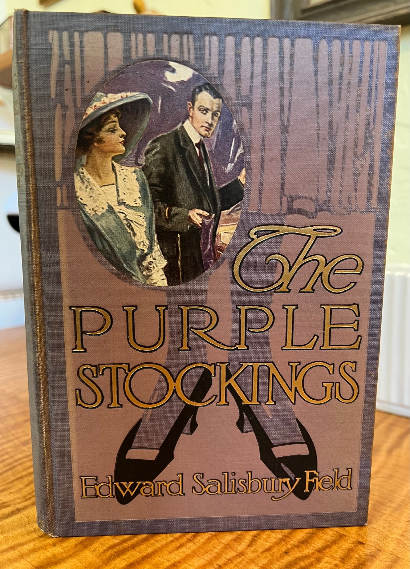 As far as I can tell, there were five of these decorative, gift-edition-type novellas by Salisbury Field published between 1906 and 1911, by at least three different houses . They're very pretty books, with backgrounds and/or borders and Harrison Fisher's/Clarence Underwood's /William Grefe's wonderful heir-to-Gibson illustrations. I've seen them come up with prize inscriptions and a presentation copy of The Purple Stockings on Biblio a while back, "Dear Governor - Here's a frivolous book written by your serious-minded & affectionate son Ned. Dec. 2nd - 1911.", suggests this title's release was timed for the Christmas holidays.