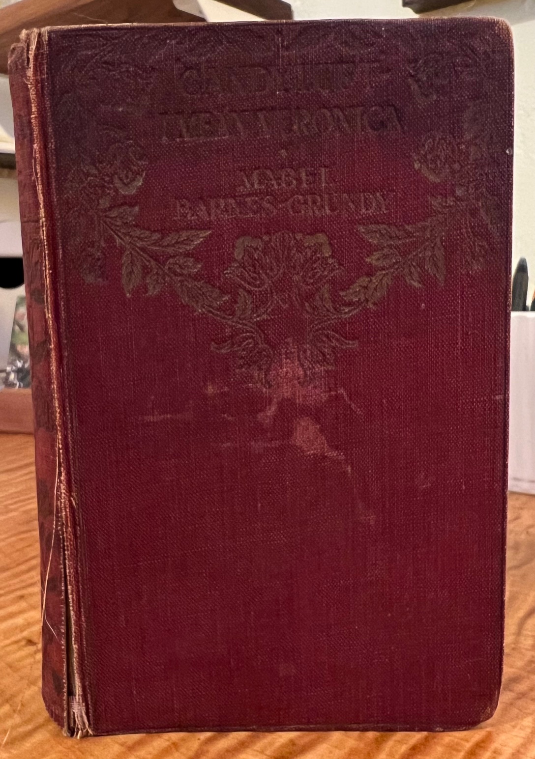 [from review in The Birkenhead News and Wirral General Advertiser, Sat, Jan 2, 1915] The many admirers of the author of "The Third Miss Wenderby" will turn with delight to her new book. And they will not be disappointed, although we cannot promise that they will meet in these pages anybody quite so delightful as the delicious and audacious Diana Wenderby. Nevertheless Candytuft, Mrs. Barnes-Grundy's latest heroine is an exceedingly charming young woman, full of unconventionality and with a downrightness of character which is delightful. She never by any chance calls a spade an agricultural implement. Candytuft, on account of her parents -- themselves a charming couple -- allowing her name to degenerate into "Candy" or Tufty" for short, changes it on her seventeenth birthday to Veronica, and thenceforth insists upon that appellation. She has to fight for the name, as she has to fight for many things, including her own happiness. She is blessed, or the reverse, with an artistic temperament, which after her marriage threatens to bring shipwreck to the happiness both of herself and her husband, whom she dearly loves without fully realising the fact. They are saved, however, by one Tony Westerton, who by practising an elaborate hoax on Veronica disgusts her with him and teaches her to love and appreciate her own nice husband. The tale is told with rare artistry, and many amusing and real live characters are introduced. Mrs. Barnes-Grundy is a mistress of the art of rendering conversation naturally, and her pages sparkle with flashes of wit and shrewd observation. This is eminently a book to be read, and even in these times we predict for it a large company of readers.