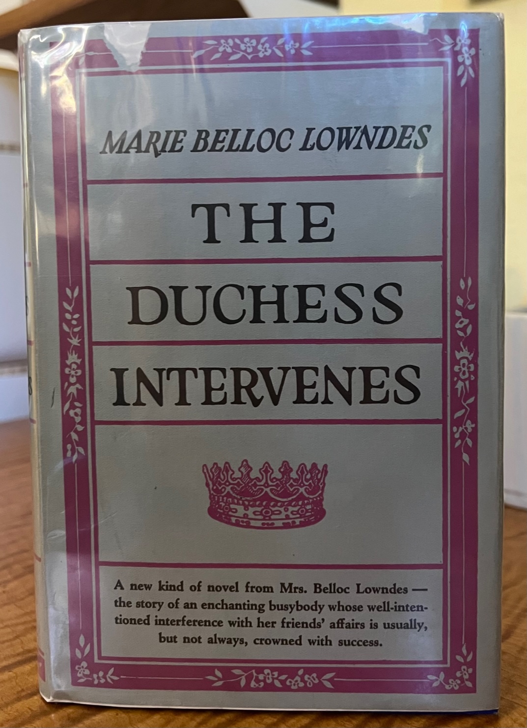[from dj flap] Mrs. Belloc Lowndes here appears in an entirely new guise, in a story of humor, sentiment and charm. In this latest story by the author of "Jenny Newstead," "The Lodger," and "Letty Lynton" there are no masked lodgers, no alarms and excursions. The book relates the episodes both grave and gay in the life of a Duchess who is even greater by nature than she is by position. Duchess Laura is wealthy, human and deeply concerned in the circumstances of her friends. A friendly busy-body, she exercises her tact in handling delicate situations and her gentle interventions, though they sometimes cause everybody anxiety, will win the sympathy and delight of every admirer of Mrs. Belloc Lowndes' penetrating pen. One enthusiastic English critic, in reviewing this book writes of Mrs. Lowndes, "There has been nobody like her since Trollope."