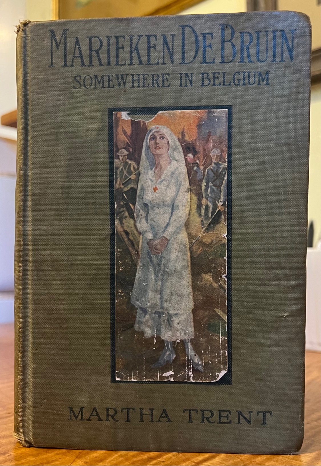 MARIEKEN DE BRUIN, SOMEWHERE IN BELGIUM -- "A Belgian girl risks her life to help English prisoners escape from the German soldiers occupying her village." -- illustrated by Charles Wrenn. 1918. Barse. Goldsmith.