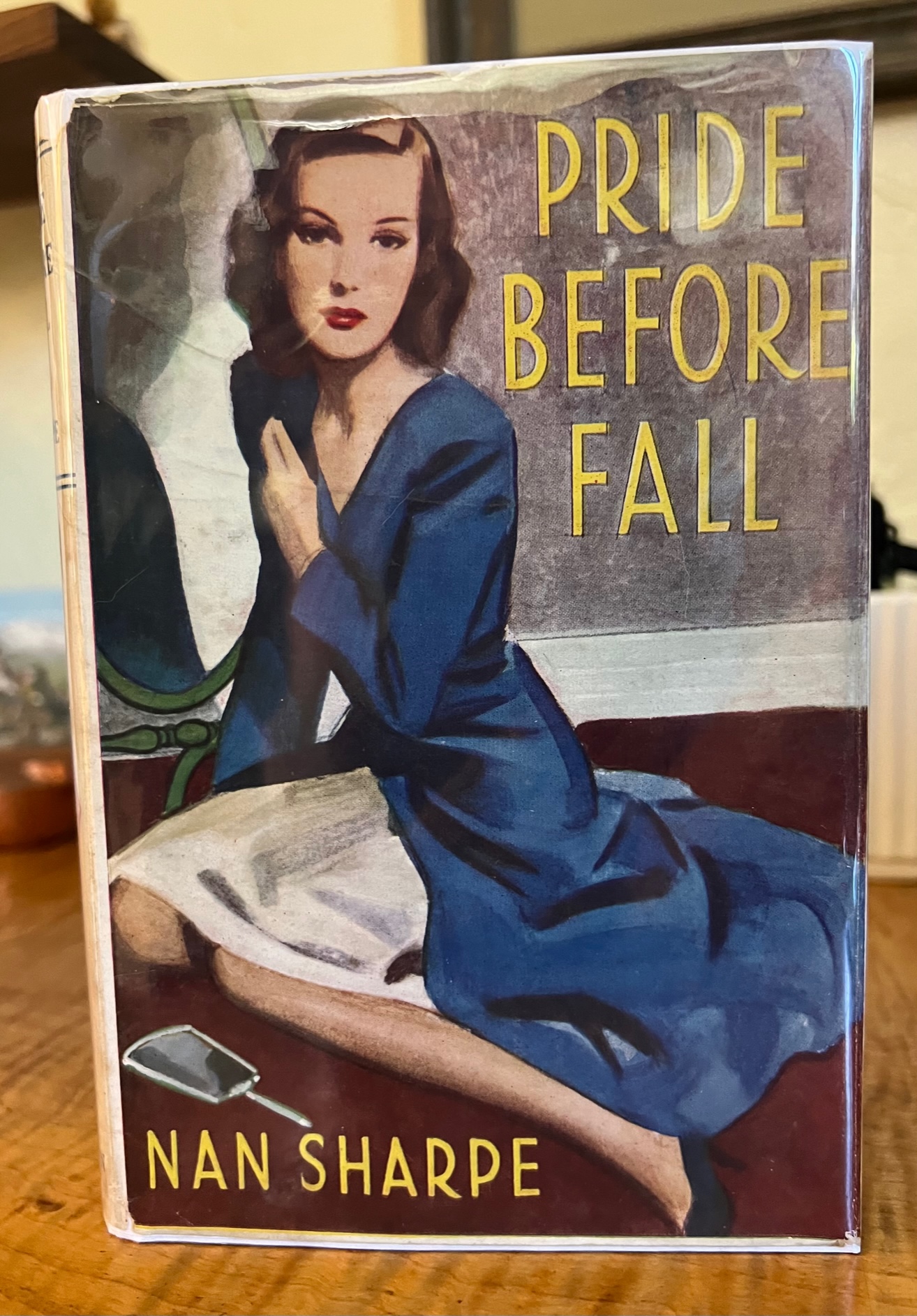 I'm having trouble finding out much about Nan Sharpe, other than that she wrote a number of other titles for Mills & Boon. This one features one of their earlier, gorgeous dust jackets, and, our copy, an inscription on the flyleaf: