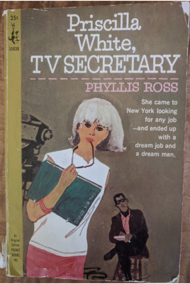Priscilla, from tiny Coppermine, Oklahoma, on her first interview in New York City, ends up being hired, not as an entry-level studio typist, but as the personal secretary of Mr. Roger Appleseed, the brilliant, mercurial mind behind Appleseed Productions. This one is pure career porn with a tiny bit of true love tacked on to, literally, the last page. I didn't use the back of the book in the description because it's a reproduction of that last page -- about as deceptive as these things get. All the personal life material preceding had been her mooning over an uninspiring high-school sweetheart. Like most of the "learning a job" fiction from this time, sexism abounds, but, like a lot of it, you actually learn interesting stuff (here, the rise of the television industry and how shows were filmed and sold). And that's really the point.