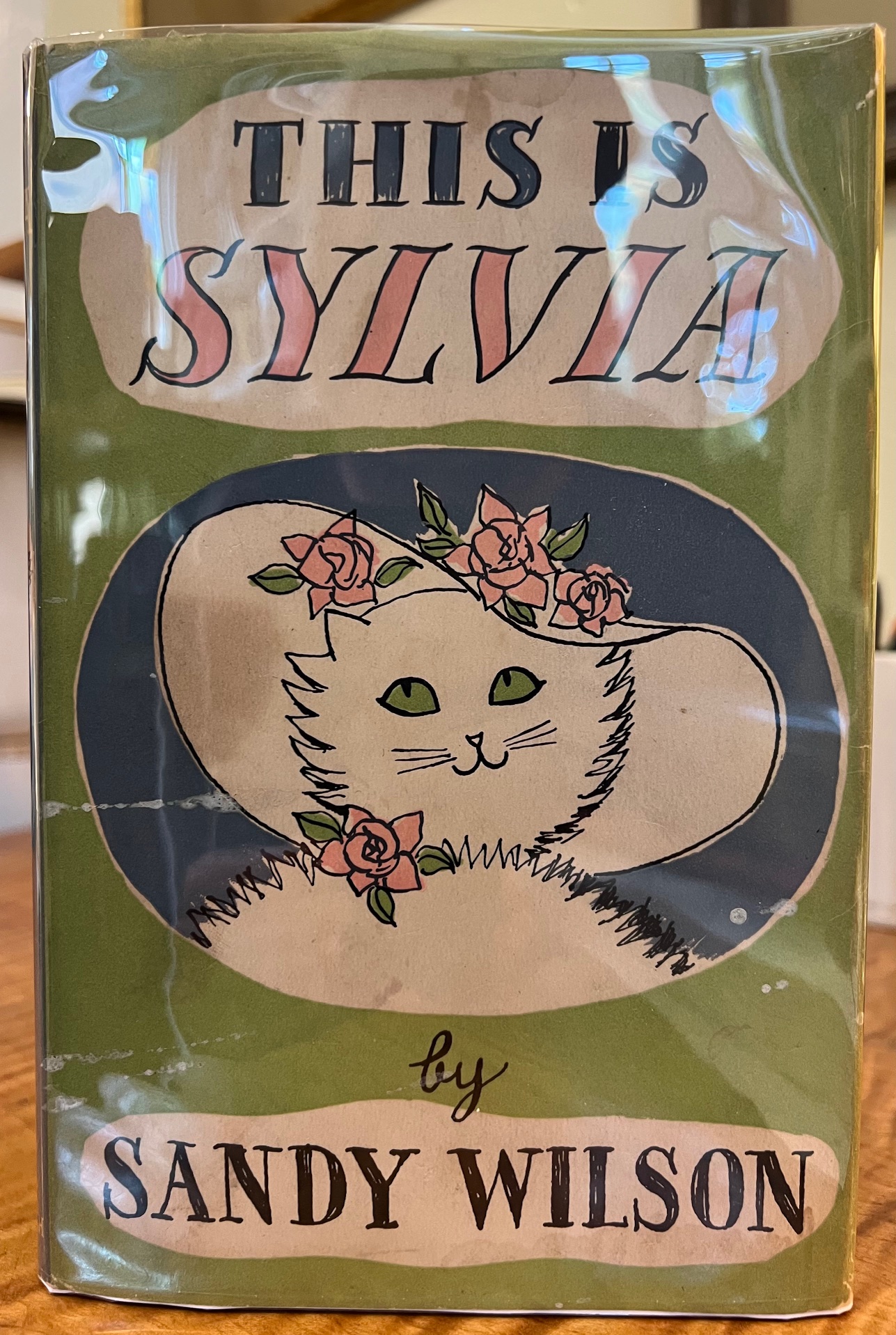 But Sylvia also has nine lives and a family of three kittens. Through her pages are scattered sketches of elegant cats which take on strangely the fashions and the personalities of each decade -- and immediately we are detached and laughing at the foibles of our age, entertained by delicious satire, enchanted by the brilliance of the new star -- Sandy Wilson.